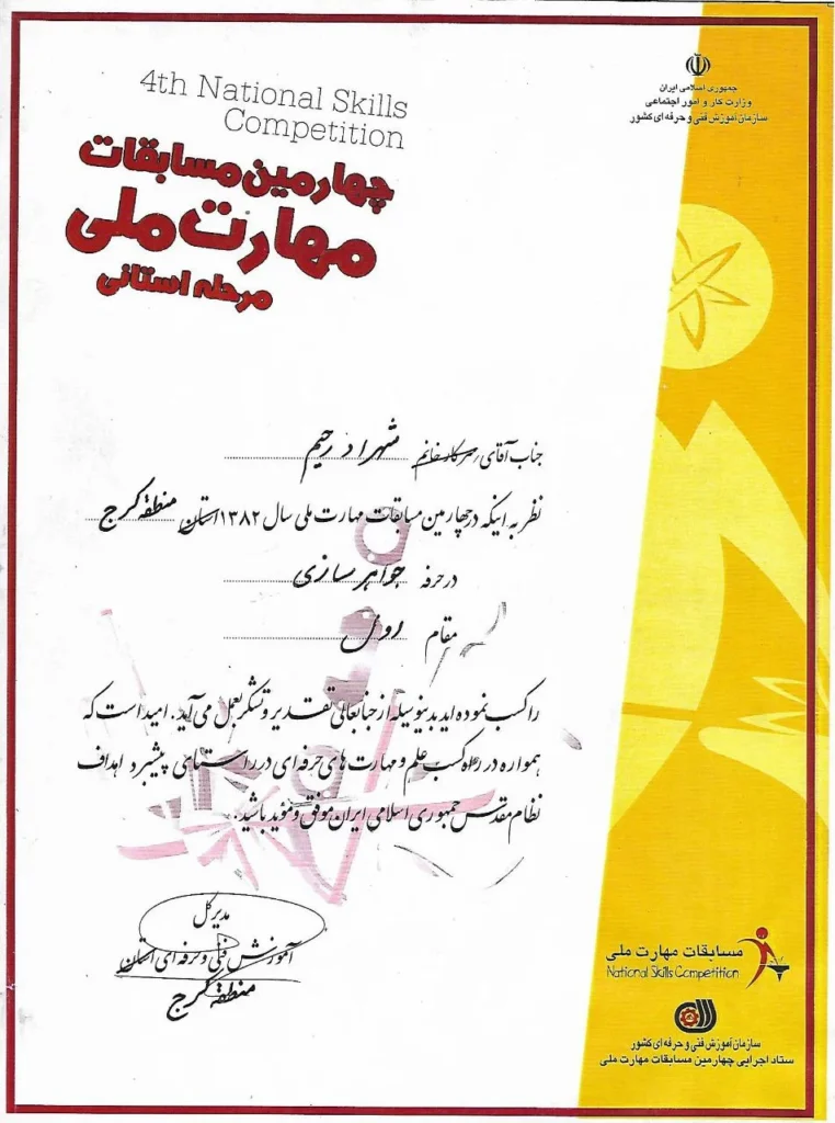افتخارات آموزشگاه طلا و جواهرسازی فتاحی